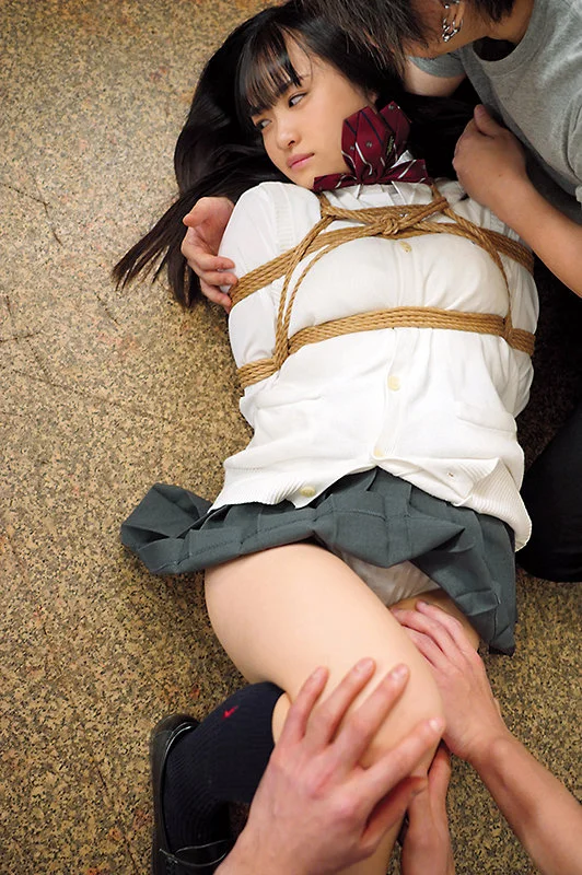 スカート、リボン、ソックスのまま、胸だけを縛られた状態です。胸はわりとしっかり縛られていて、大きめなおっぱいがせり出している感じがエロくて良いです。
